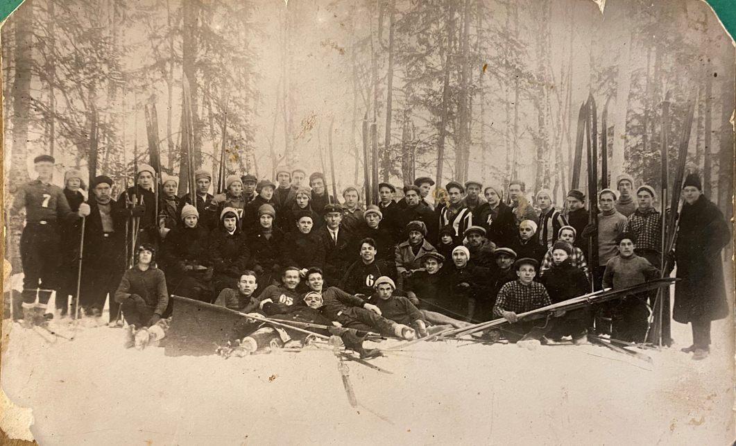 Участники лыжного похода Мытищи-Киев-Мытищи. 1935 год. Фотография из собрания Мытищинского историко-художественного музея.
